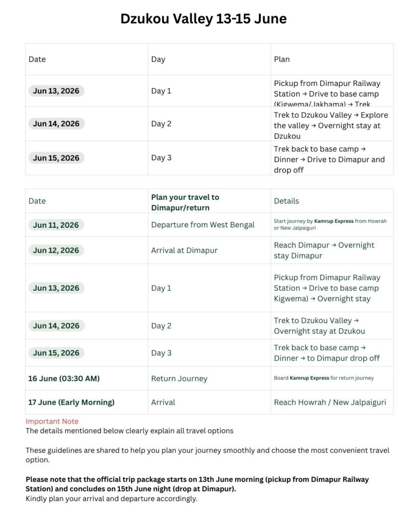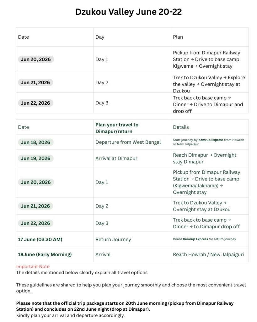 Food AvailabilityNo food limitations except at Dzukou stay conditions